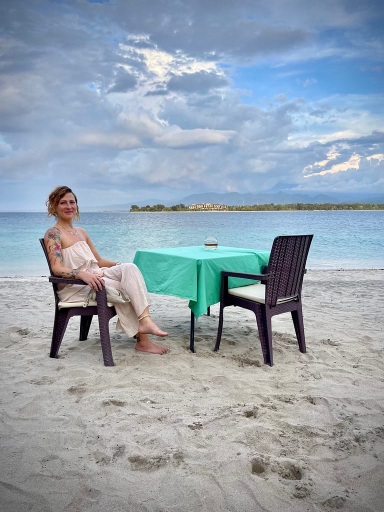 To wydarzyło się na raz: przełomowa podróż łodzią, kiedy przestałam się bać, że wypadnę; nurkowanie w poszukiwaniu żółwi morskich podczas którego doświadczyłam bycia ławicą; bliskie spotkanie z balijskim poczuciem humoru, które znalazłam jako totalnie w punkt mojego; i wreszcie zupełnie nieplanowany zakup małego symbolu trzech wysp Gili, który zawiesiłam na szyi.