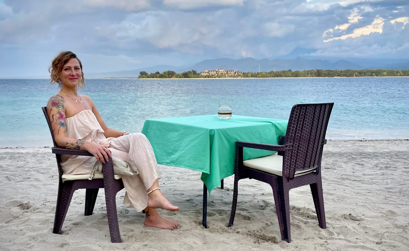 To wydarzyło się na raz: przełomowa podróż łodzią, kiedy przestałam się bać, że wypadnę; nurkowanie w poszukiwaniu żółwi morskich podczas którego doświadczyłam bycia ławicą; bliskie spotkanie z balijskim poczuciem humoru, które znalazłam jako totalnie w punkt mojego; i wreszcie zupełnie nieplanowany zakup małego symbolu trzech wysp Gili, który zawiesiłam na szyi.