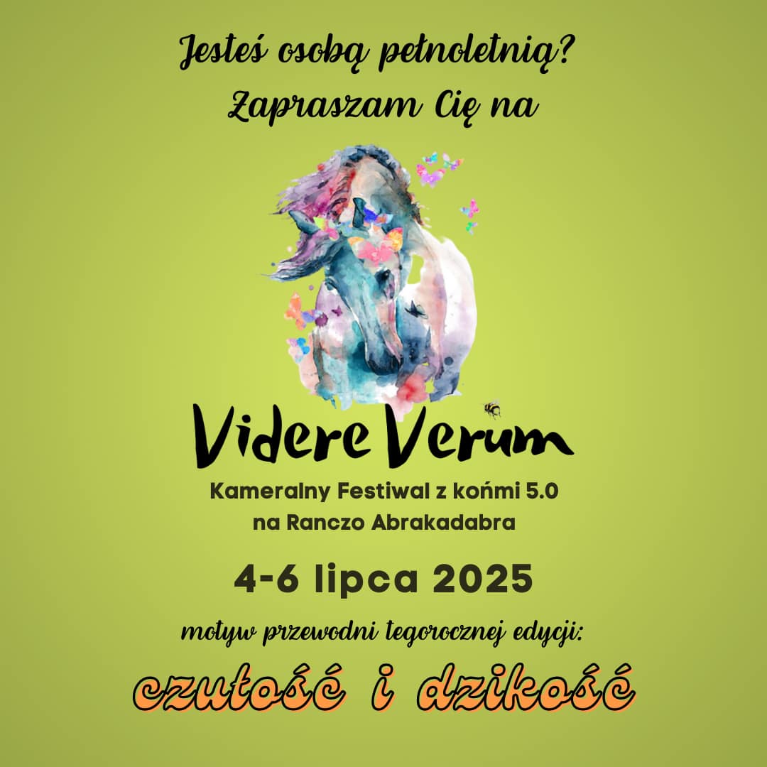 W pierwszy weekend lipca zapraszam Cię serdecznie na czwartą edycję kameralnego Festiwalu Videre Verum, który odbędzie się w Natural Road Ranch aka Ranczo Abrakadabra pod Warszawą. Videre Verum to festiwal z udziałem koni, który obfituje w spotkania i warsztaty o tematyce psychologicznej, rozwojowej, terapeutycznej, duchowej, artystycznej oraz pracy z ciałem.